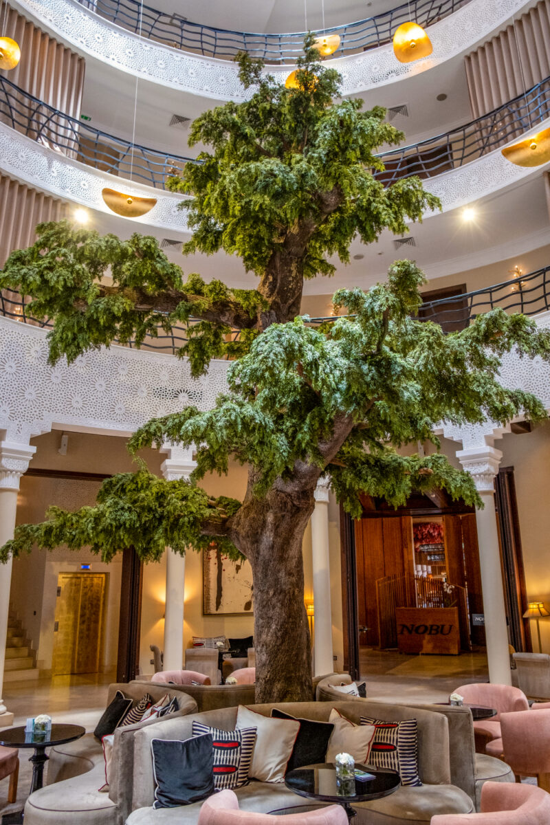 “Nobu Hotels combina el lujo moderno y la tradición japonesa mínima en el concepto de un hotel de estilo de vida. Los hoteles, restaurantes y residencias de Nobu interactúan juntos para proporcionar productos y servicios de Nobu que comparten las características comunes de las experiencias gastronómicas únicas de Nobu. Cada uno ofrece una experiencia local con un diseño moderno y espacios impresionantes.”