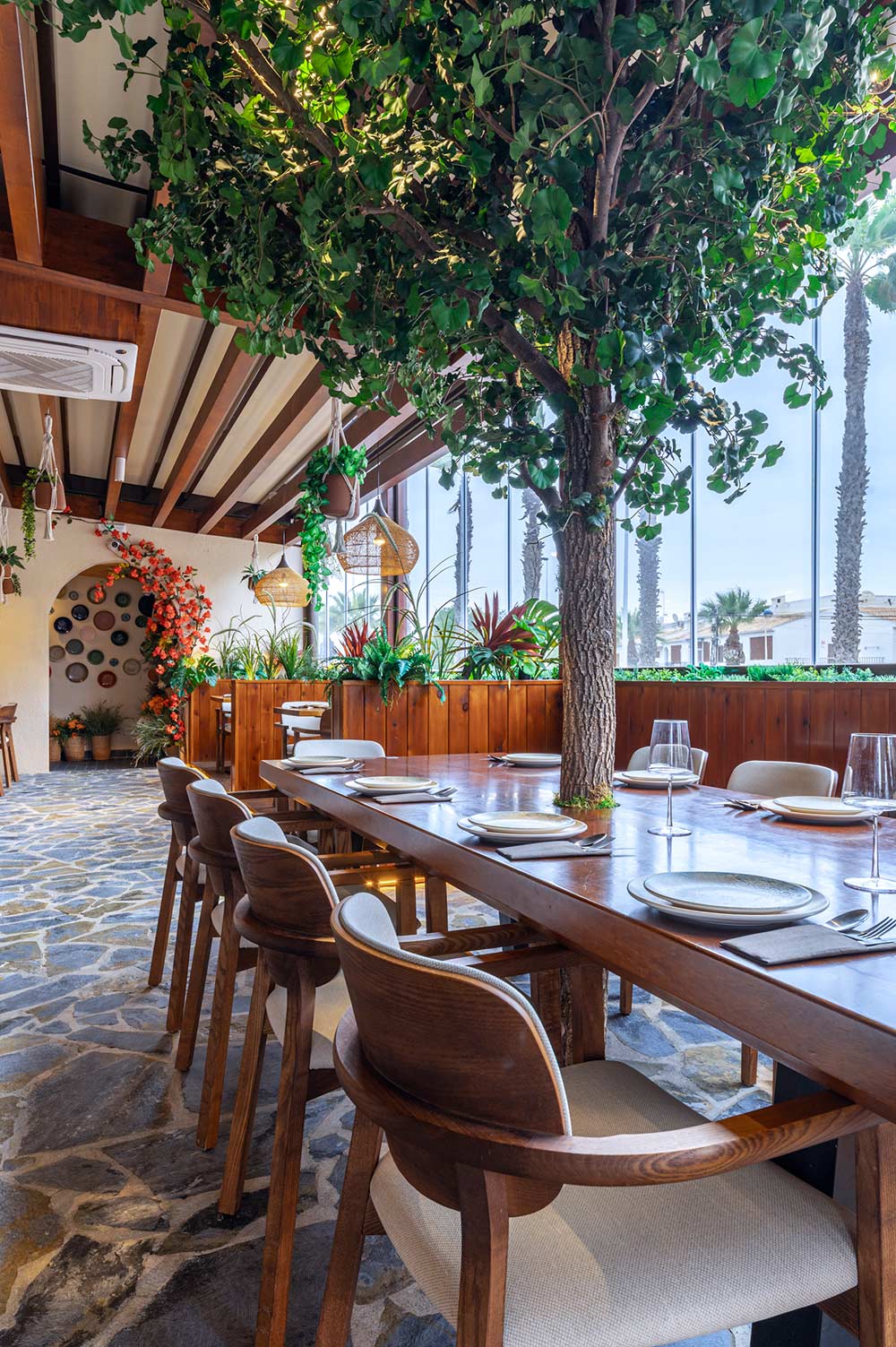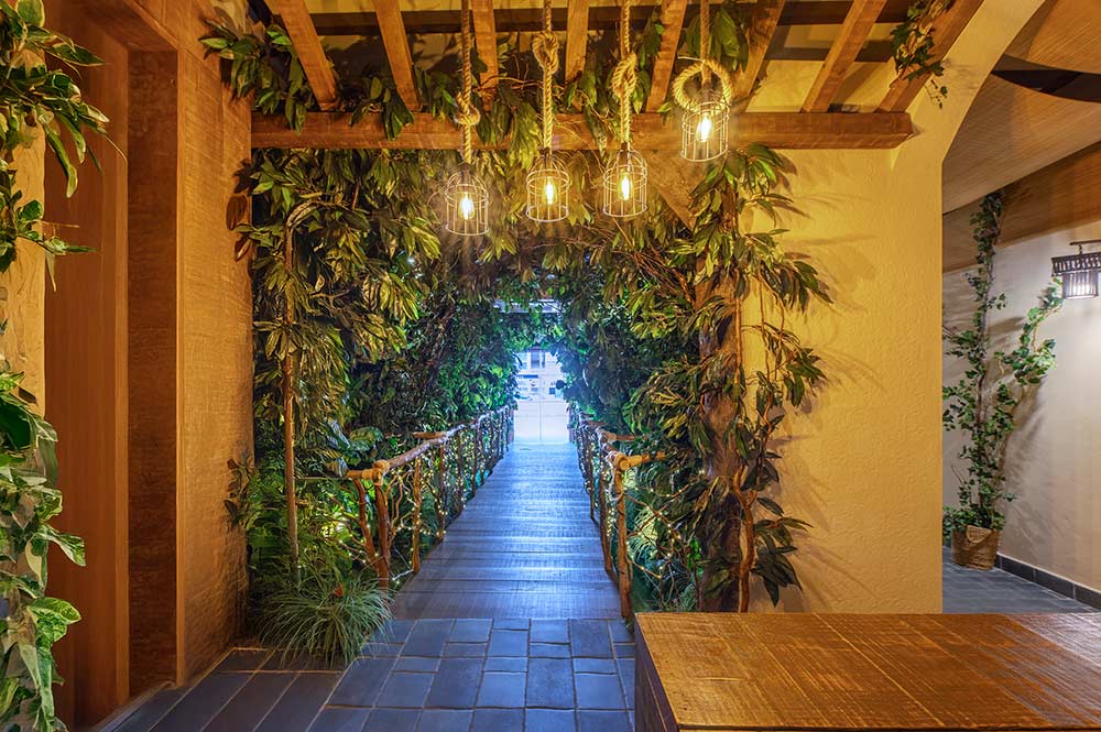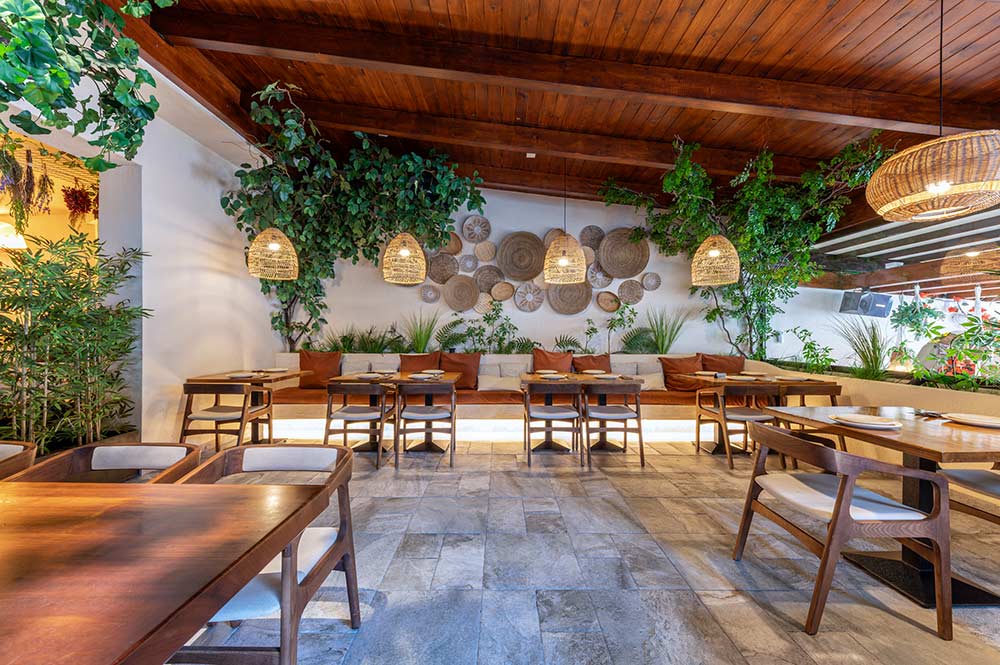 Este proyecto de vegetación creativa para restaurantes destaca por la variedad de especies, colores y aplicaciones: árboles, techos verdes, enredaderas, composiciones murales, jardineras y estructuras a medida que convierten cada rincón en una experiencia visual y sensorial.
